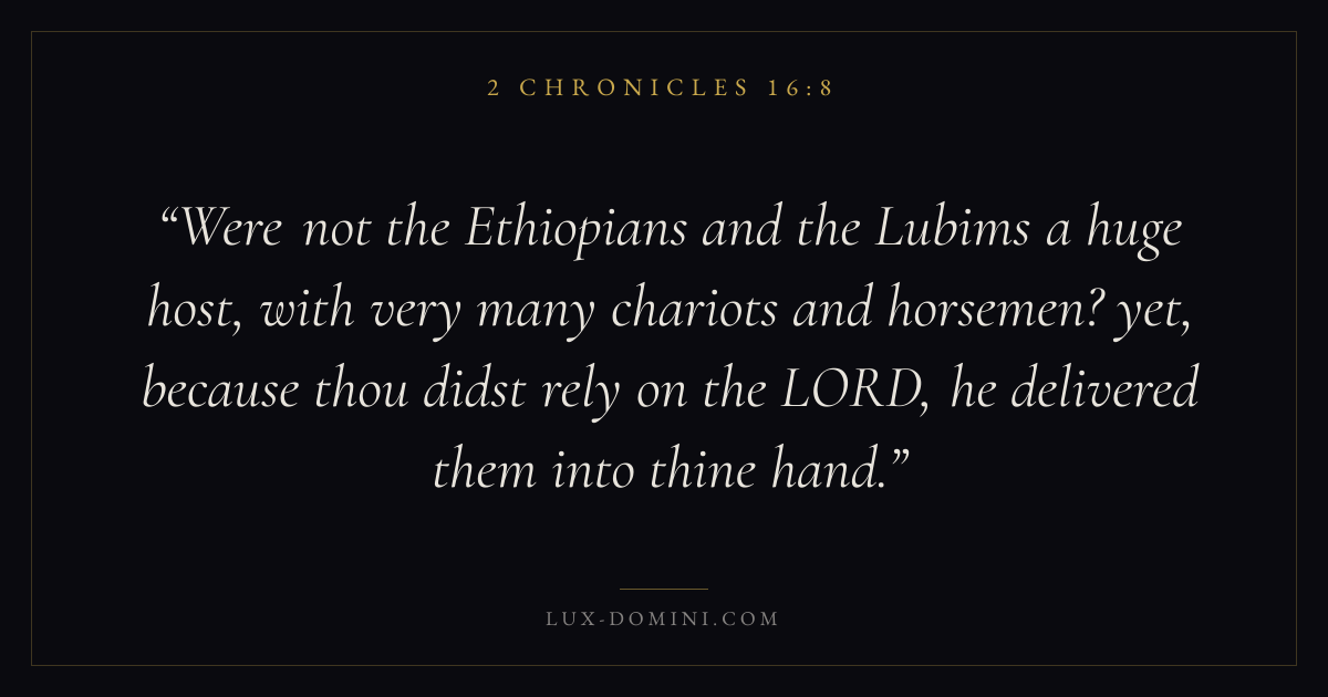 Were not the Ethiopians and the Lubims a huge host, with very many chariots and horsemen? yet, because thou didst rely on the LORD, he delivered them into thine hand.