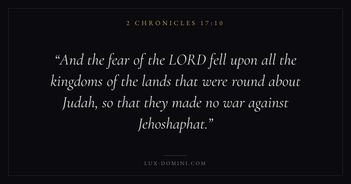 And the fear of the LORD fell upon all the kingdoms of the lands that were round about Judah, so that they made no war against Jehoshaphat.