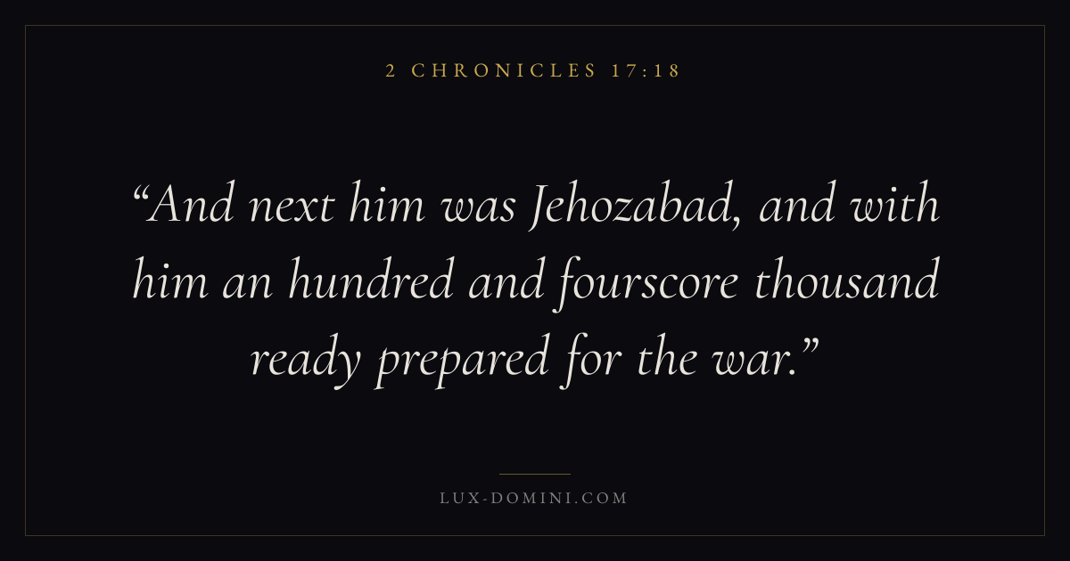 And next him was Jehozabad, and with him an hundred and fourscore thousand ready prepared for the war.