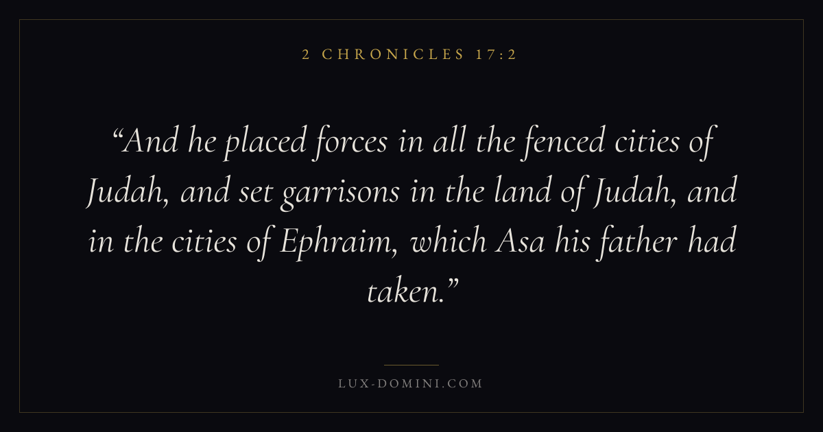 And he placed forces in all the fenced cities of Judah, and set garrisons in the land of Judah, and in the cities of Ephraim, which Asa his father had taken.