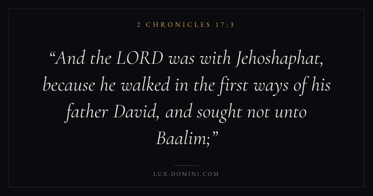 And the LORD was with Jehoshaphat, because he walked in the first ways of his father David, and sought not unto Baalim;