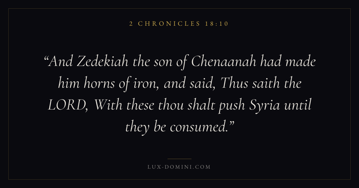 And Zedekiah the son of Chenaanah had made him horns of iron, and said, Thus saith the LORD, With these thou shalt push Syria until they be consumed.