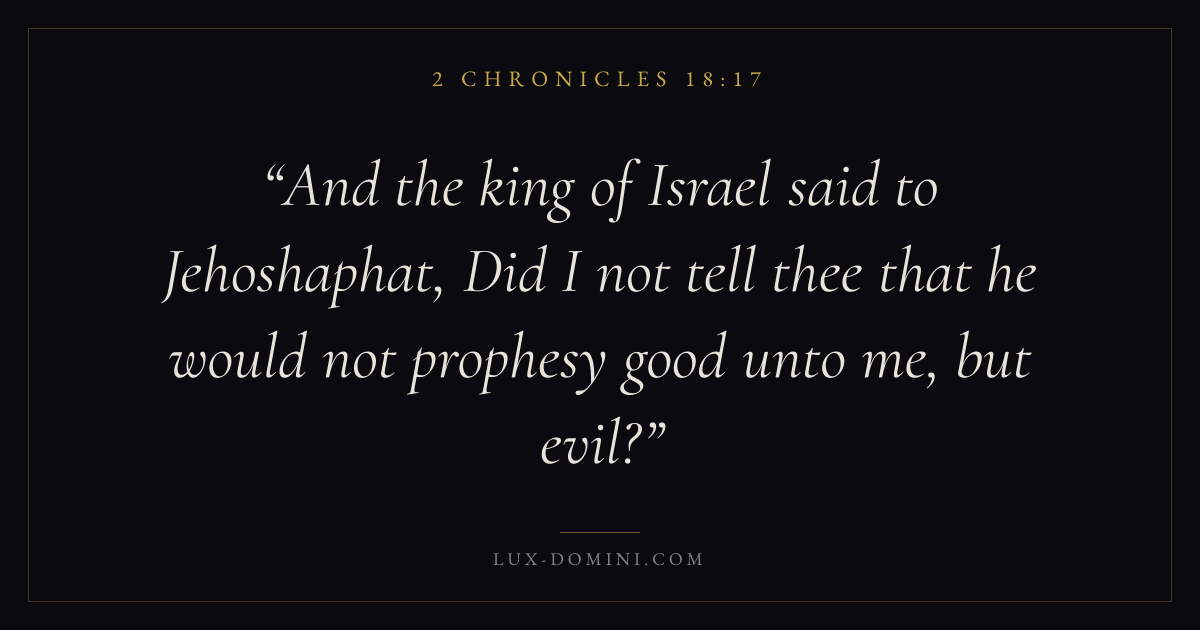 And the king of Israel said to Jehoshaphat, Did I not tell thee that he would not prophesy good unto me, but evil?