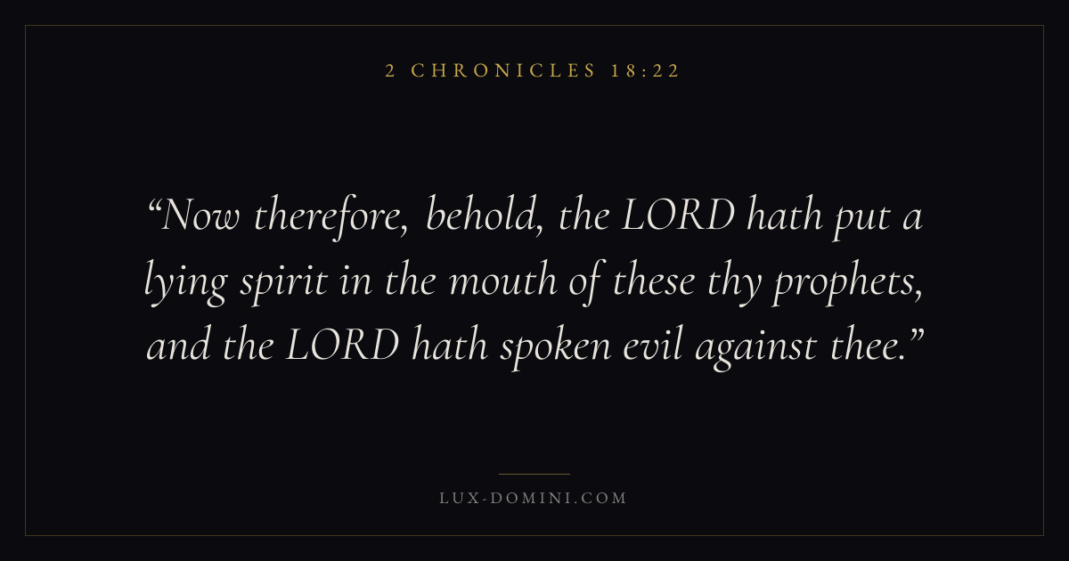 Now therefore, behold, the LORD hath put a lying spirit in the mouth of these thy prophets, and the LORD hath spoken evil against thee.
