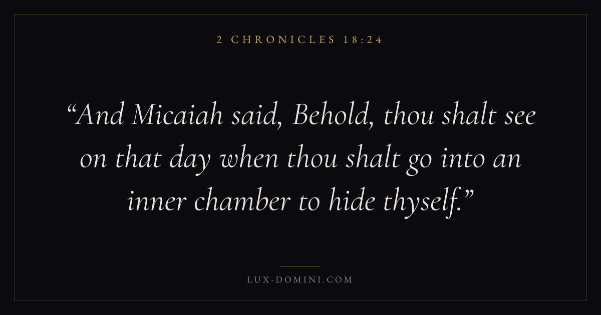 And Micaiah said, Behold, thou shalt see on that day when thou shalt go into an inner chamber to hide thyself.