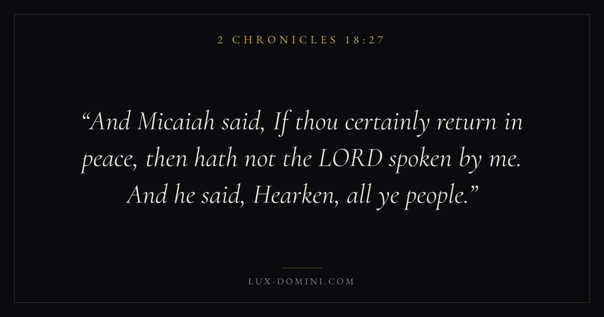 And Micaiah said, If thou certainly return in peace, then hath not the LORD spoken by me. And he said, Hearken, all ye people.