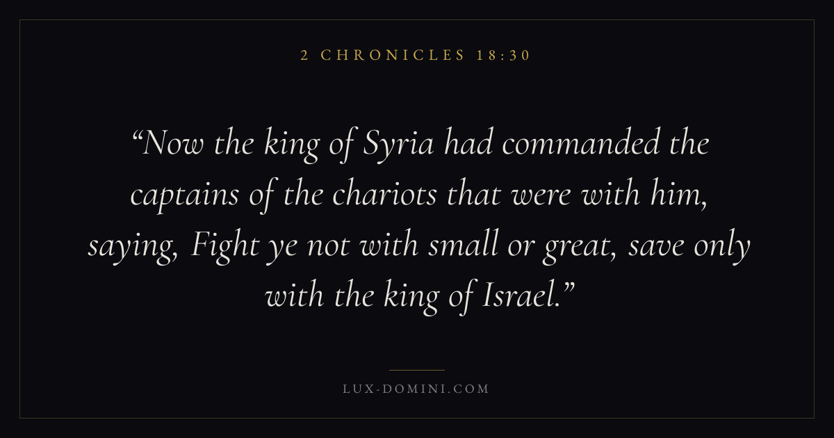 Now the king of Syria had commanded the captains of the chariots that were with him, saying, Fight ye not with small or great, save only with the king of Israel.