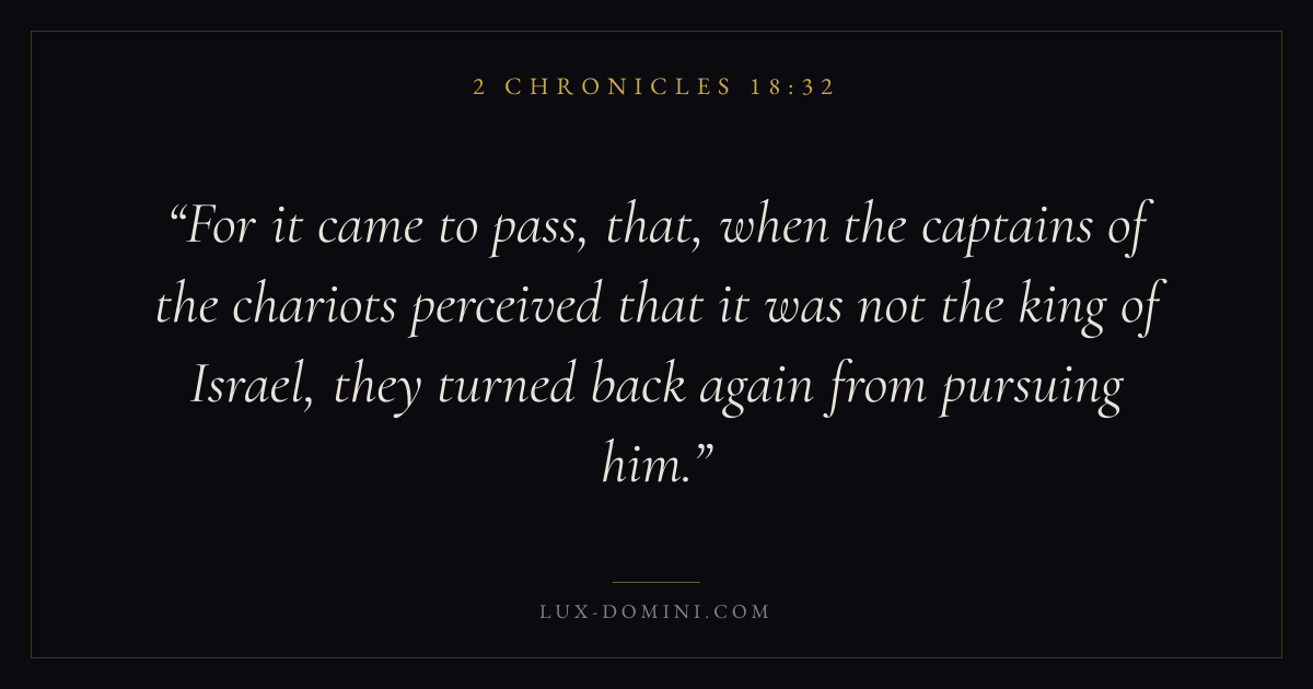 For it came to pass, that, when the captains of the chariots perceived that it was not the king of Israel, they turned back again from pursuing him.