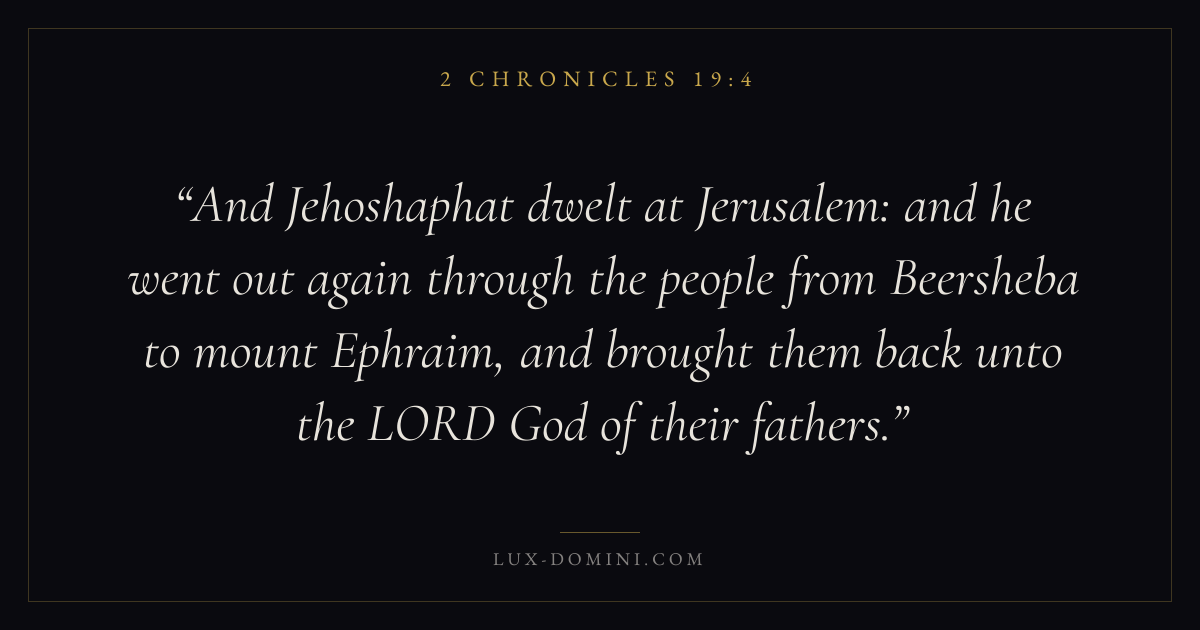 And Jehoshaphat dwelt at Jerusalem: and he went out again through the people from Beersheba to mount Ephraim, and brought them back unto the LORD God of their fathers.