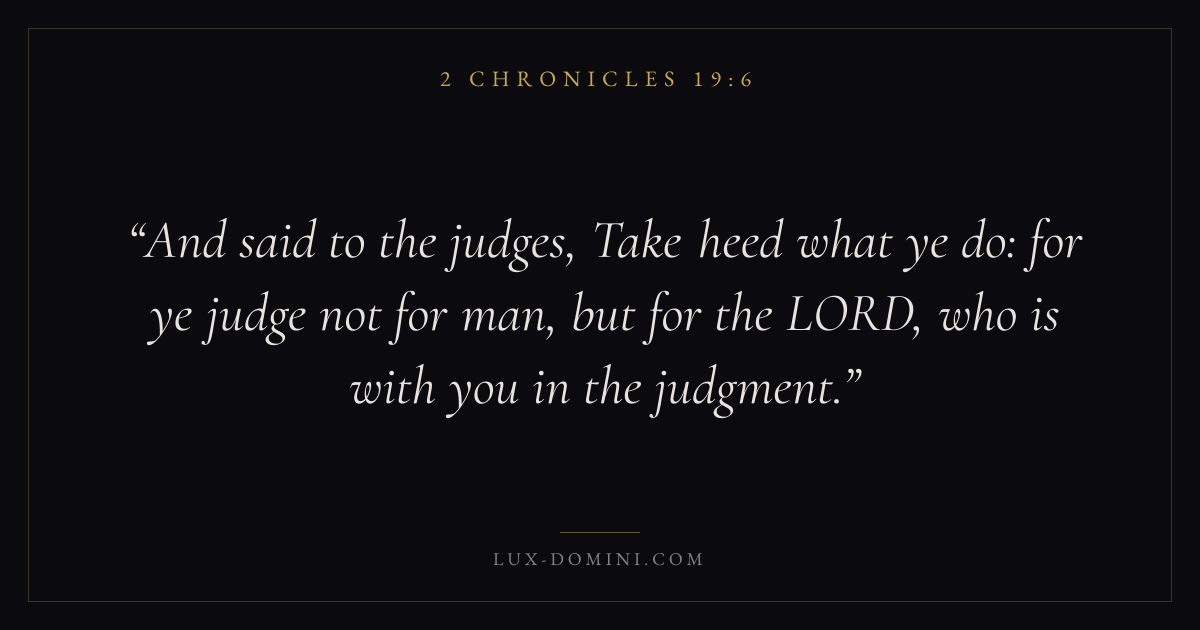 And said to the judges, Take heed what ye do: for ye judge not for man, but for the LORD, who is with you in the judgment.