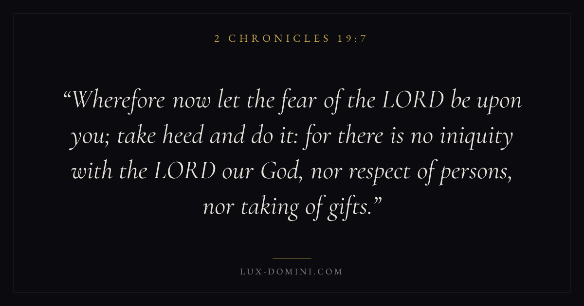 Wherefore now let the fear of the LORD be upon you; take heed and do it: for there is no iniquity with the LORD our God, nor respect of persons, nor taking of gifts.