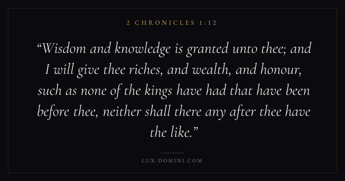 Wisdom and knowledge is granted unto thee; and I will give thee riches, and wealth, and honour, such as none of the kings have had that have been before thee, neither shall there any after thee have the like.