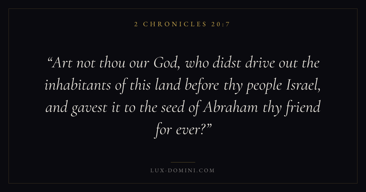 Art not thou our God, who didst drive out the inhabitants of this land before thy people Israel, and gavest it to the seed of Abraham thy friend for ever?