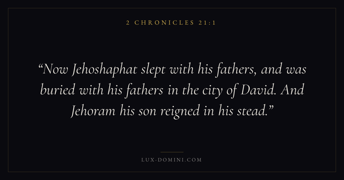Now Jehoshaphat slept with his fathers, and was buried with his fathers in the city of David. And Jehoram his son reigned in his stead.