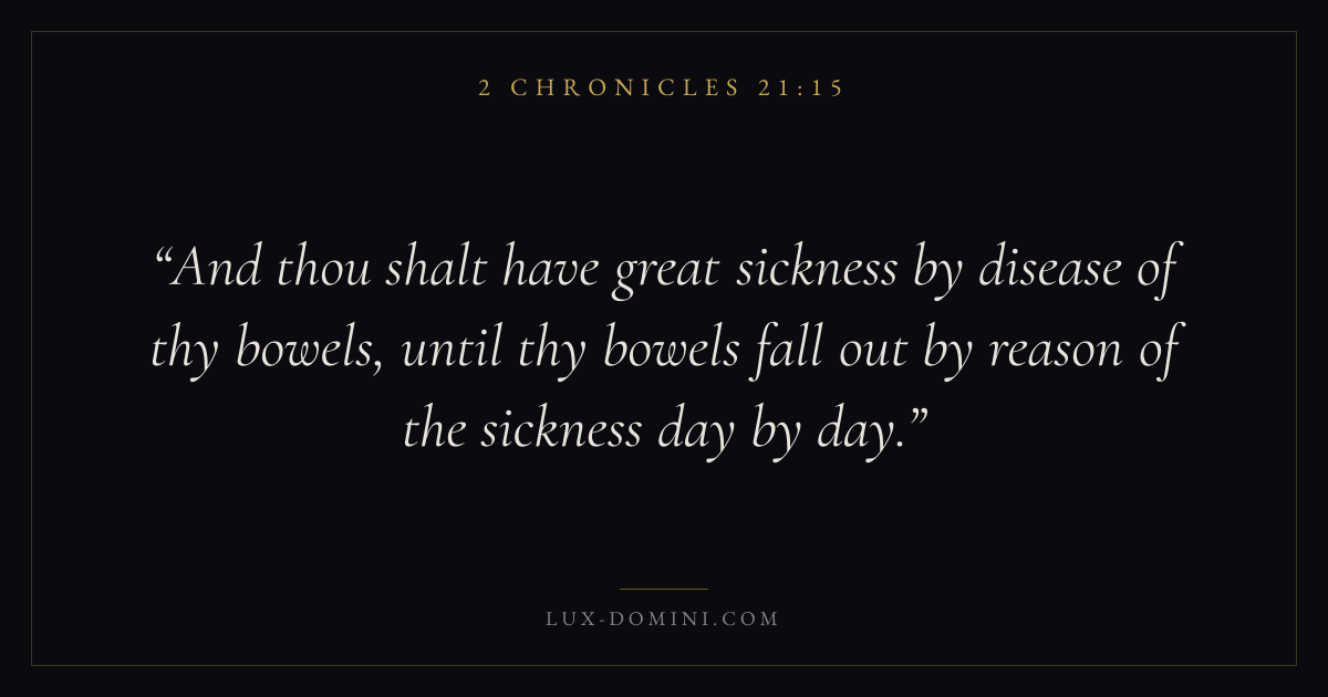 And thou shalt have great sickness by disease of thy bowels, until thy bowels fall out by reason of the sickness day by day.