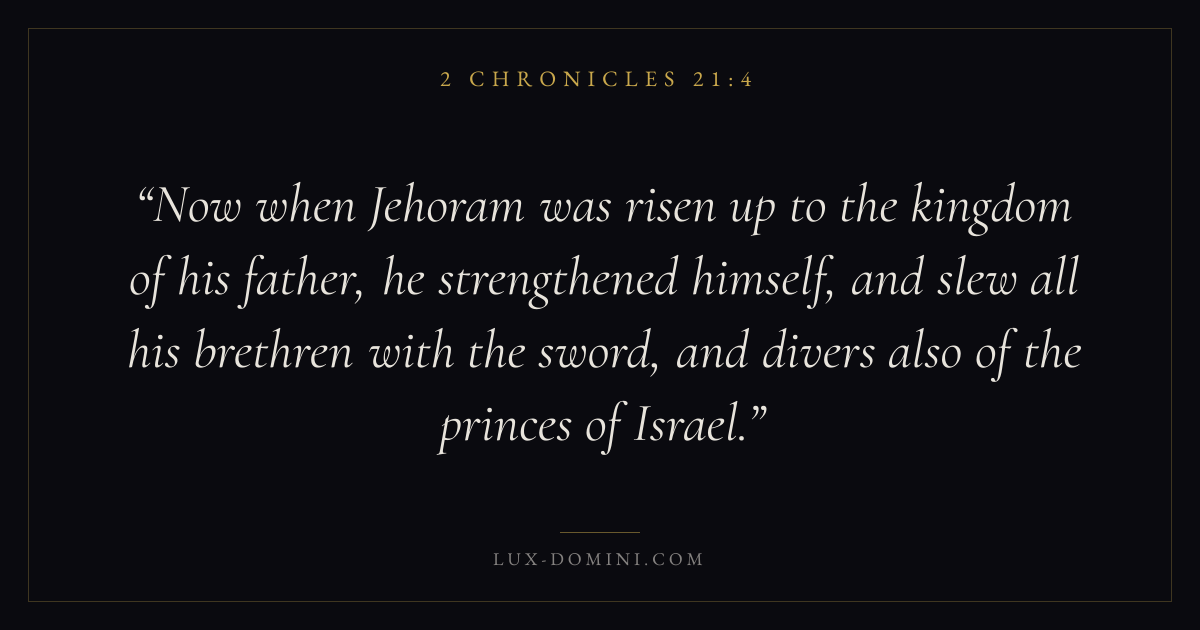 Now when Jehoram was risen up to the kingdom of his father, he strengthened himself, and slew all his brethren with the sword, and divers also of the princes of Israel.