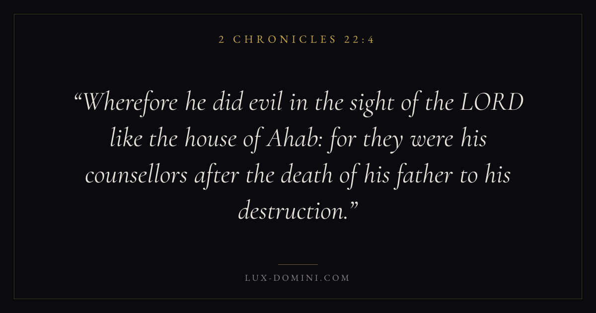 Wherefore he did evil in the sight of the LORD like the house of Ahab: for they were his counsellors after the death of his father to his destruction.
