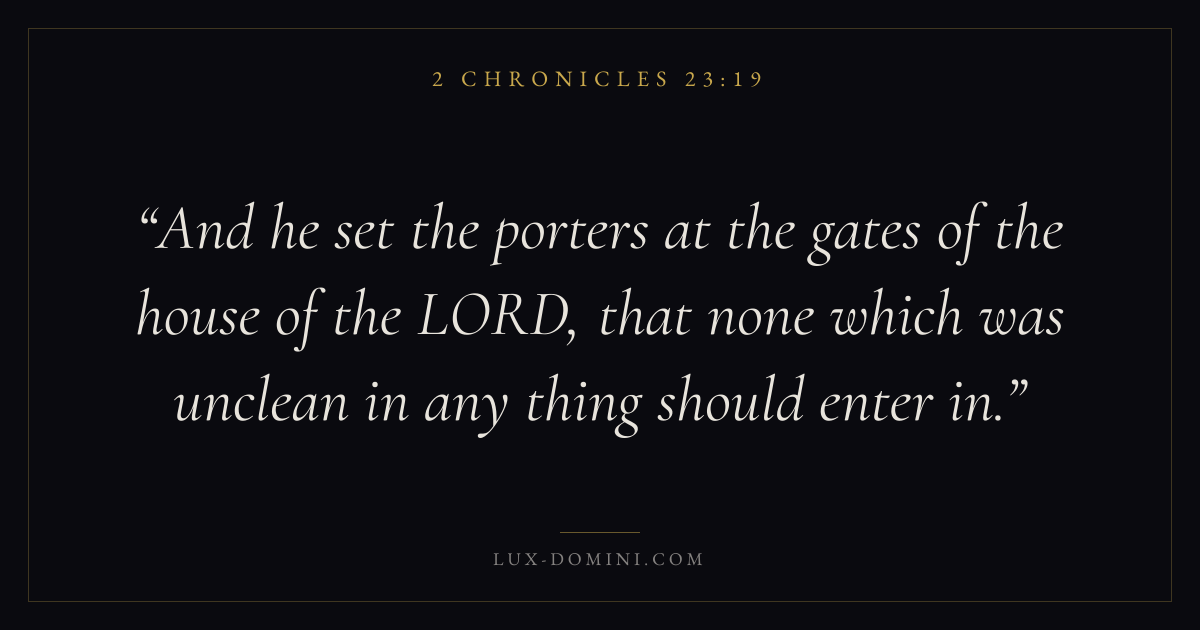 And he set the porters at the gates of the house of the LORD, that none which was unclean in any thing should enter in.