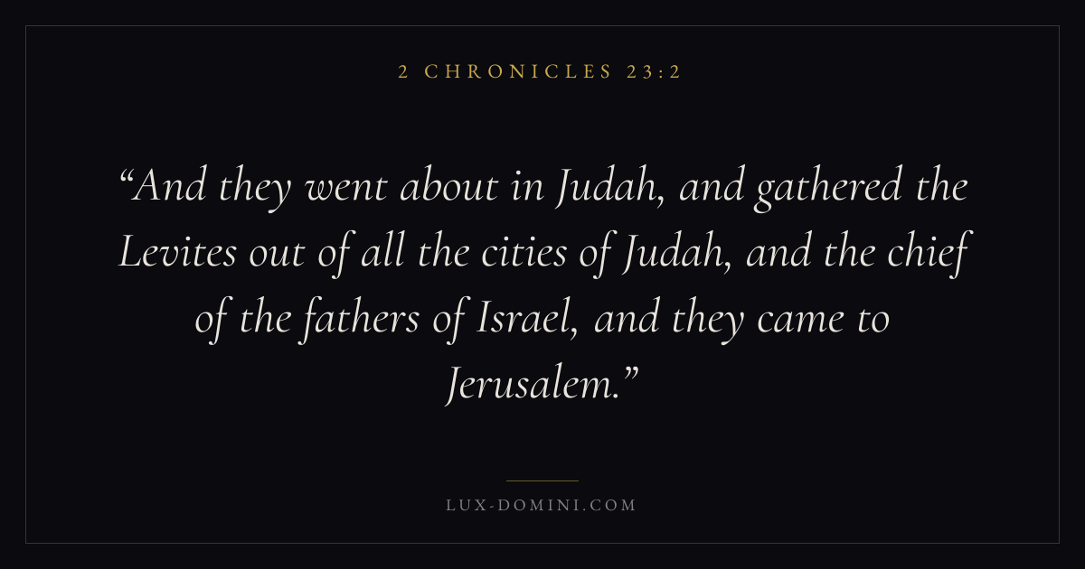 And they went about in Judah, and gathered the Levites out of all the cities of Judah, and the chief of the fathers of Israel, and they came to Jerusalem.