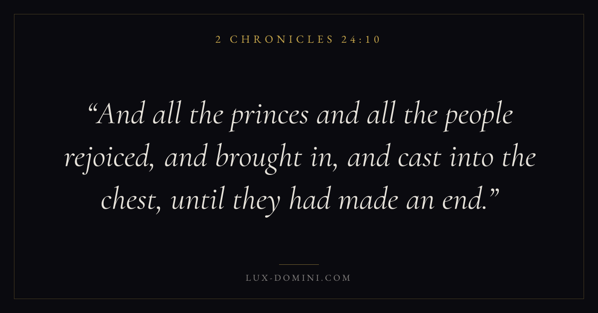 And all the princes and all the people rejoiced, and brought in, and cast into the chest, until they had made an end.