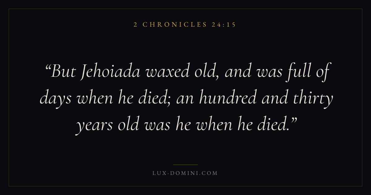 But Jehoiada waxed old, and was full of days when he died; an hundred and thirty years old was he when he died.