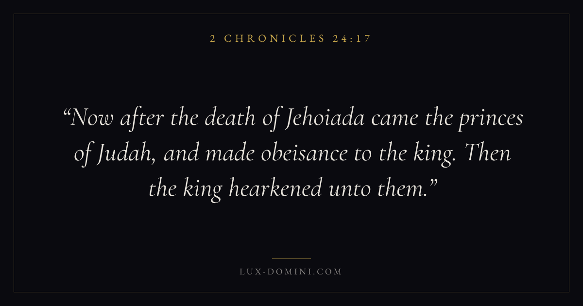 Now after the death of Jehoiada came the princes of Judah, and made obeisance to the king. Then the king hearkened unto them.