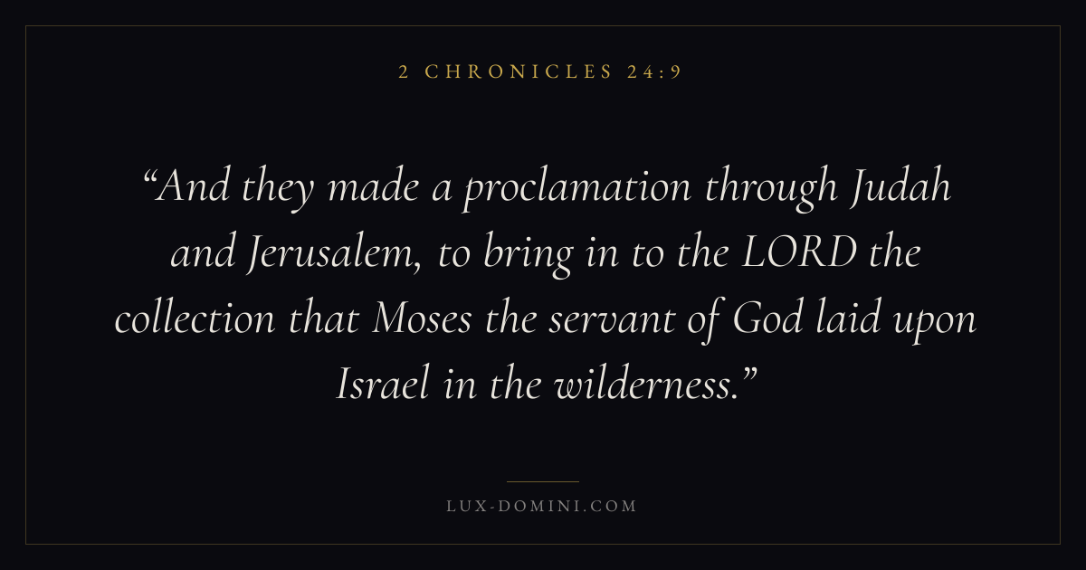 And they made a proclamation through Judah and Jerusalem, to bring in to the LORD the collection that Moses the servant of God laid upon Israel in the wilderness.