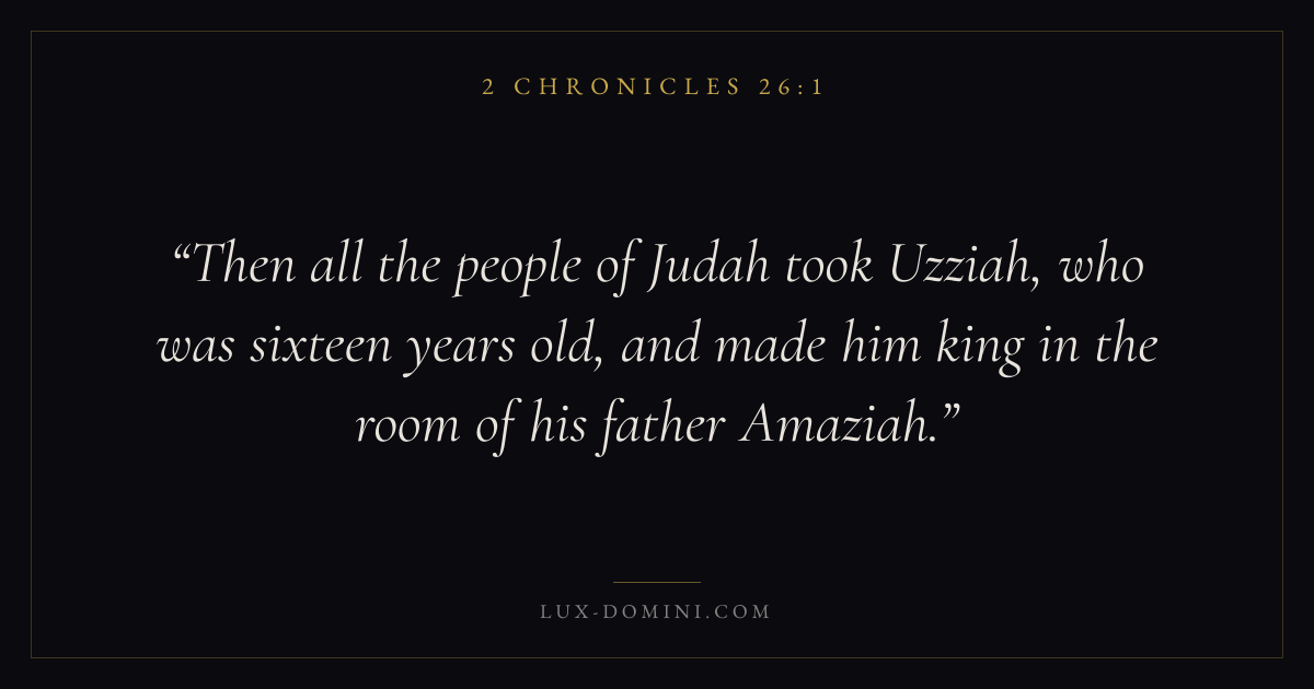 Then all the people of Judah took Uzziah, who was sixteen years old, and made him king in the room of his father Amaziah.
