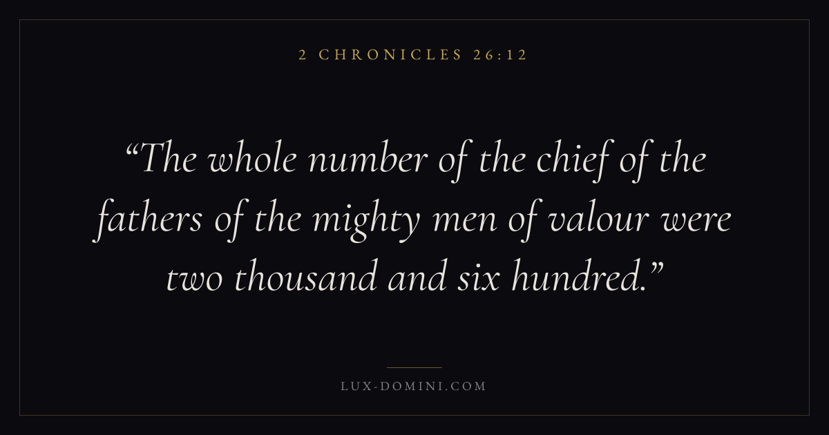 The whole number of the chief of the fathers of the mighty men of valour were two thousand and six hundred.