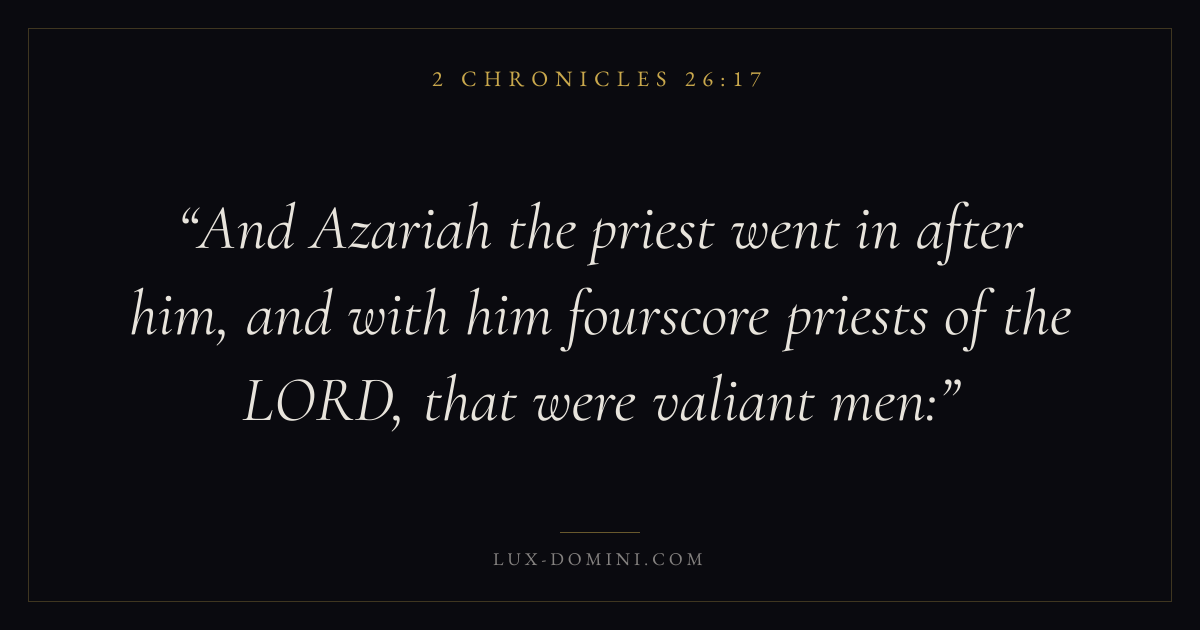 And Azariah the priest went in after him, and with him fourscore priests of the LORD, that were valiant men: