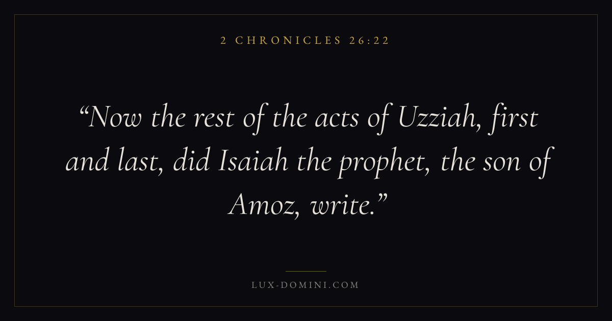 Now the rest of the acts of Uzziah, first and last, did Isaiah the prophet, the son of Amoz, write.