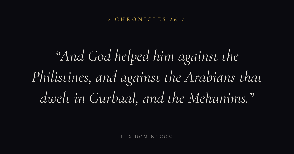 And God helped him against the Philistines, and against the Arabians that dwelt in Gurbaal, and the Mehunims.