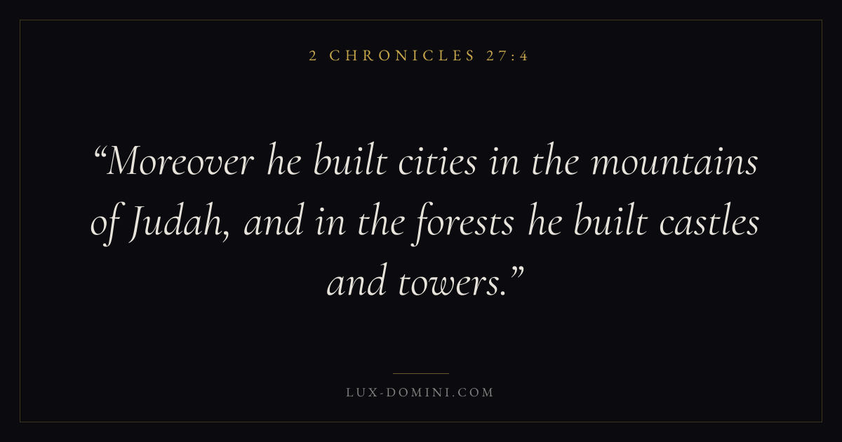 Moreover he built cities in the mountains of Judah, and in the forests he built castles and towers.