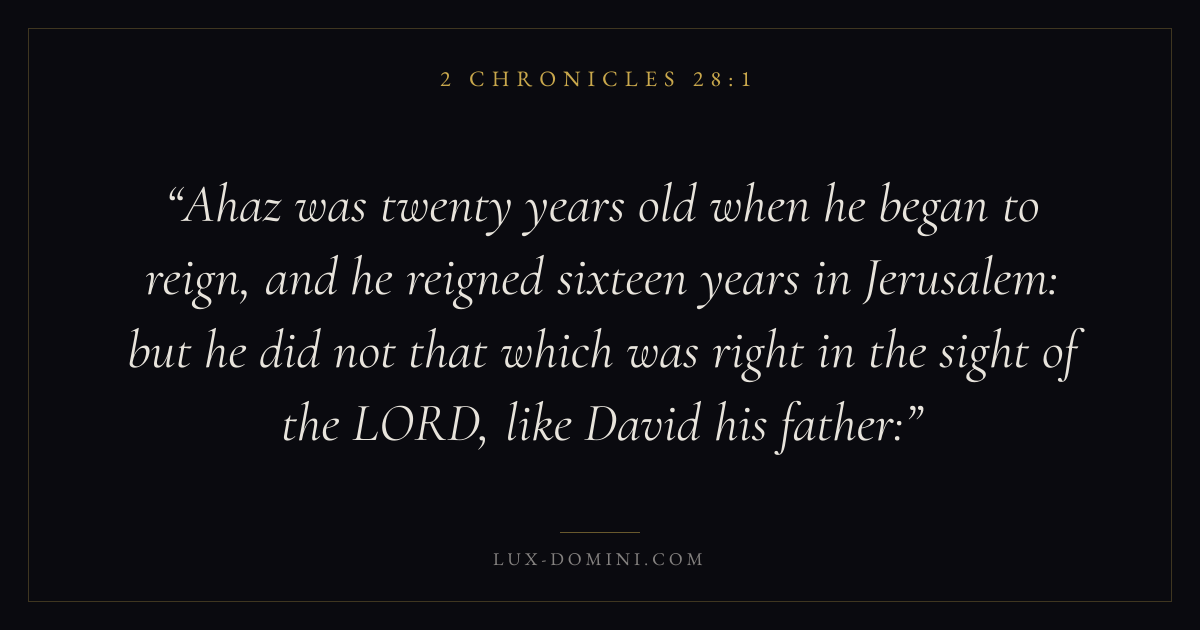 Ahaz was twenty years old when he began to reign, and he reigned sixteen years in Jerusalem: but he did not that which was right in the sight of the LORD, like David his father: