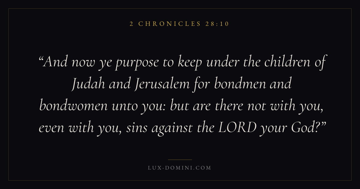 And now ye purpose to keep under the children of Judah and Jerusalem for bondmen and bondwomen unto you: but are there not with you, even with you, sins against the LORD your God?