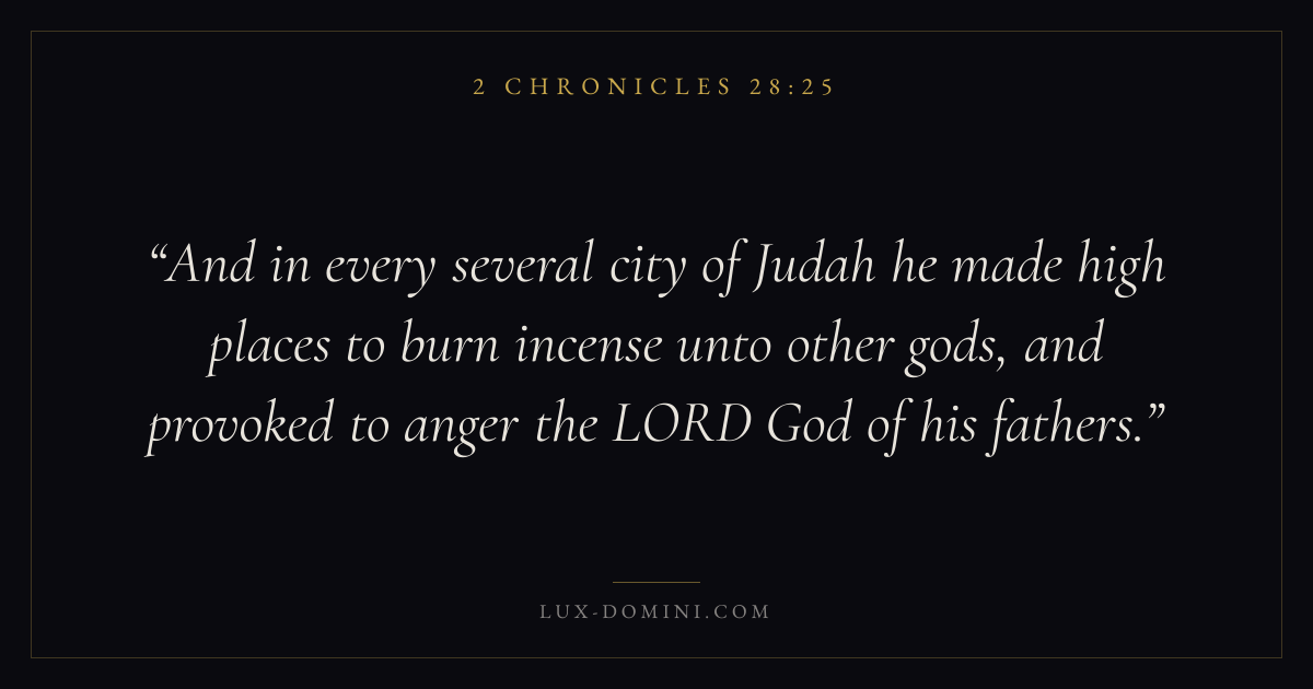And in every several city of Judah he made high places to burn incense unto other gods, and provoked to anger the LORD God of his fathers.