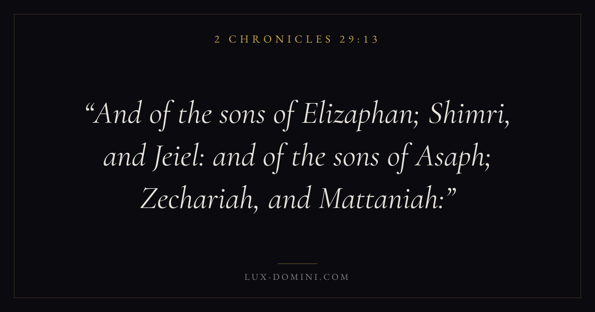 And of the sons of Elizaphan; Shimri, and Jeiel: and of the sons of Asaph; Zechariah, and Mattaniah: