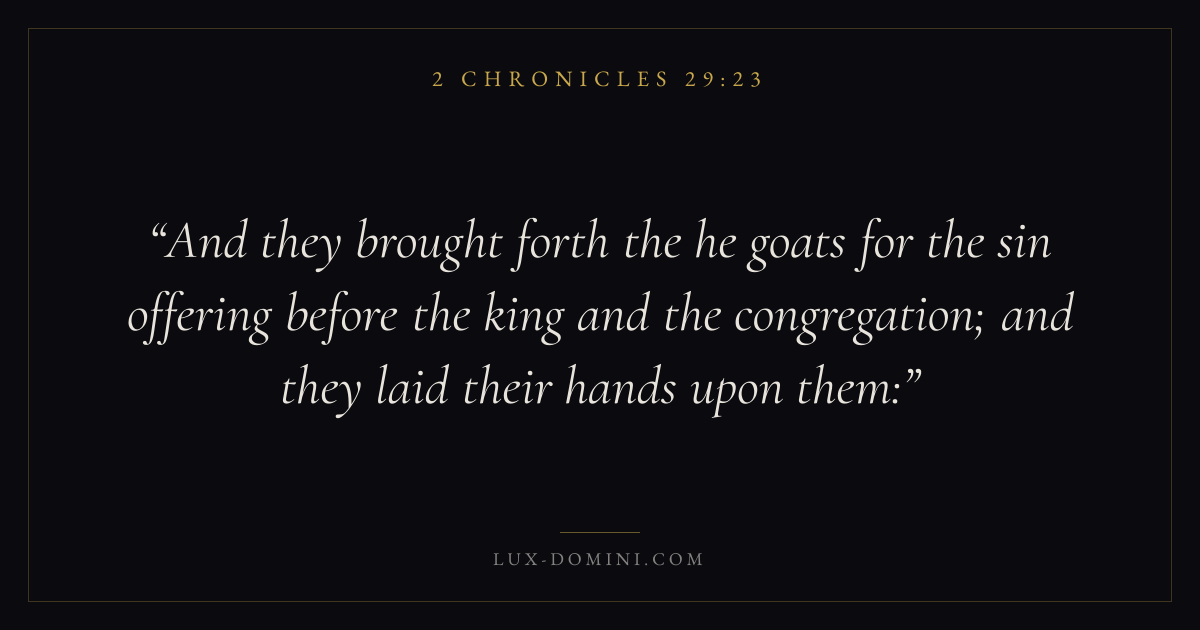 And they brought forth the he goats for the sin offering before the king and the congregation; and they laid their hands upon them:
