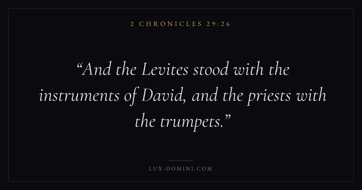 And the Levites stood with the instruments of David, and the priests with the trumpets.