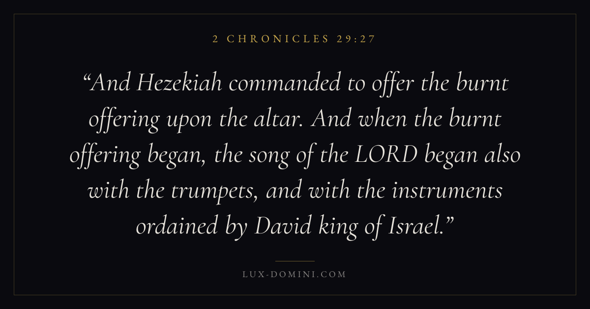 And Hezekiah commanded to offer the burnt offering upon the altar. And when the burnt offering began, the song of the LORD began also with the trumpets, and with the instruments ordained by David king of Israel.