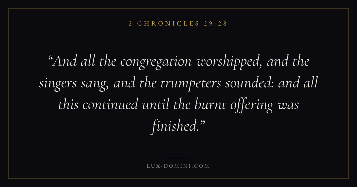 And all the congregation worshipped, and the singers sang, and the trumpeters sounded: and all this continued until the burnt offering was finished.