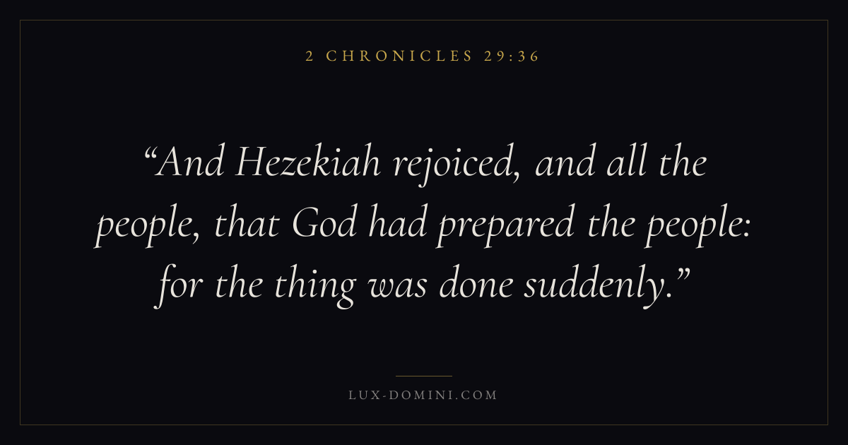 And Hezekiah rejoiced, and all the people, that God had prepared the people: for the thing was done suddenly.