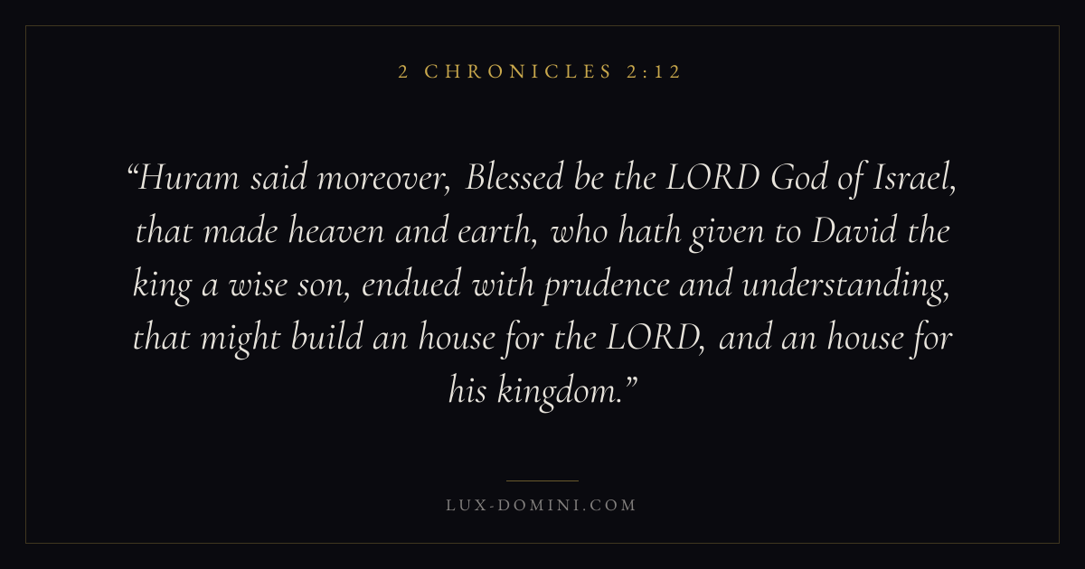 Huram said moreover, Blessed be the LORD God of Israel, that made heaven and earth, who hath given to David the king a wise son, endued with prudence and understanding, that might build an house for the LORD, and an house for his kingdom.