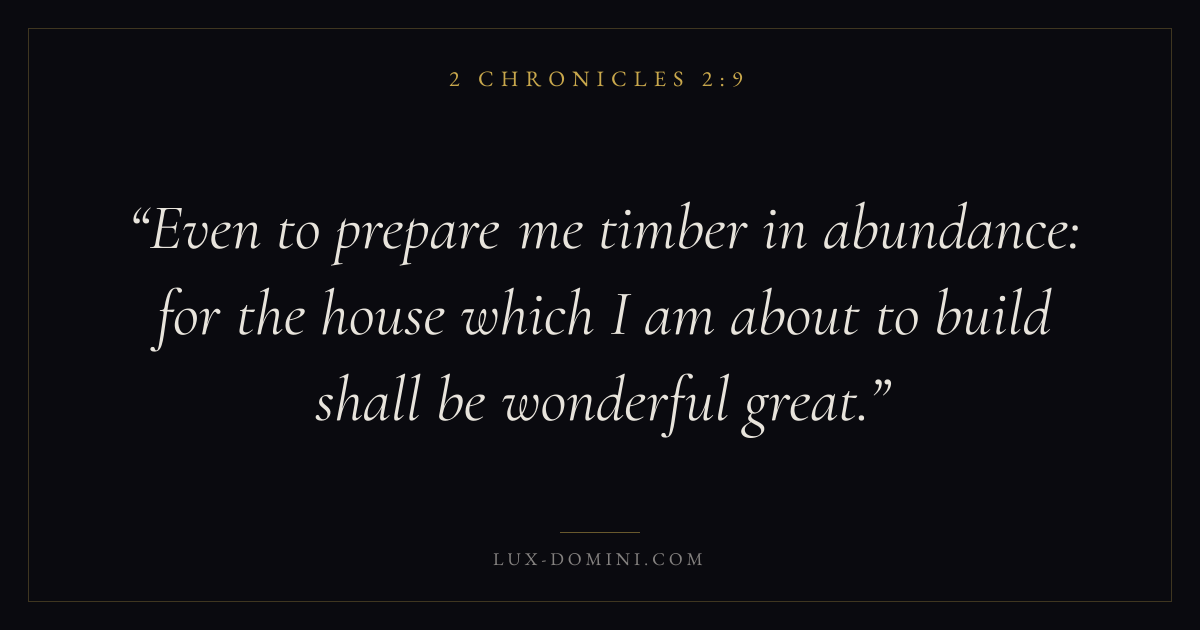 Even to prepare me timber in abundance: for the house which I am about to build shall be wonderful great.