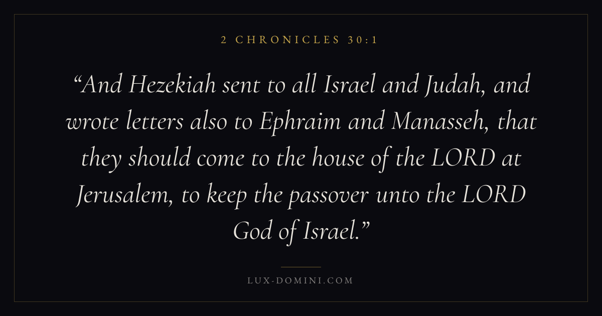 And Hezekiah sent to all Israel and Judah, and wrote letters also to Ephraim and Manasseh, that they should come to the house of the LORD at Jerusalem, to keep the passover unto the LORD God of Israel.
