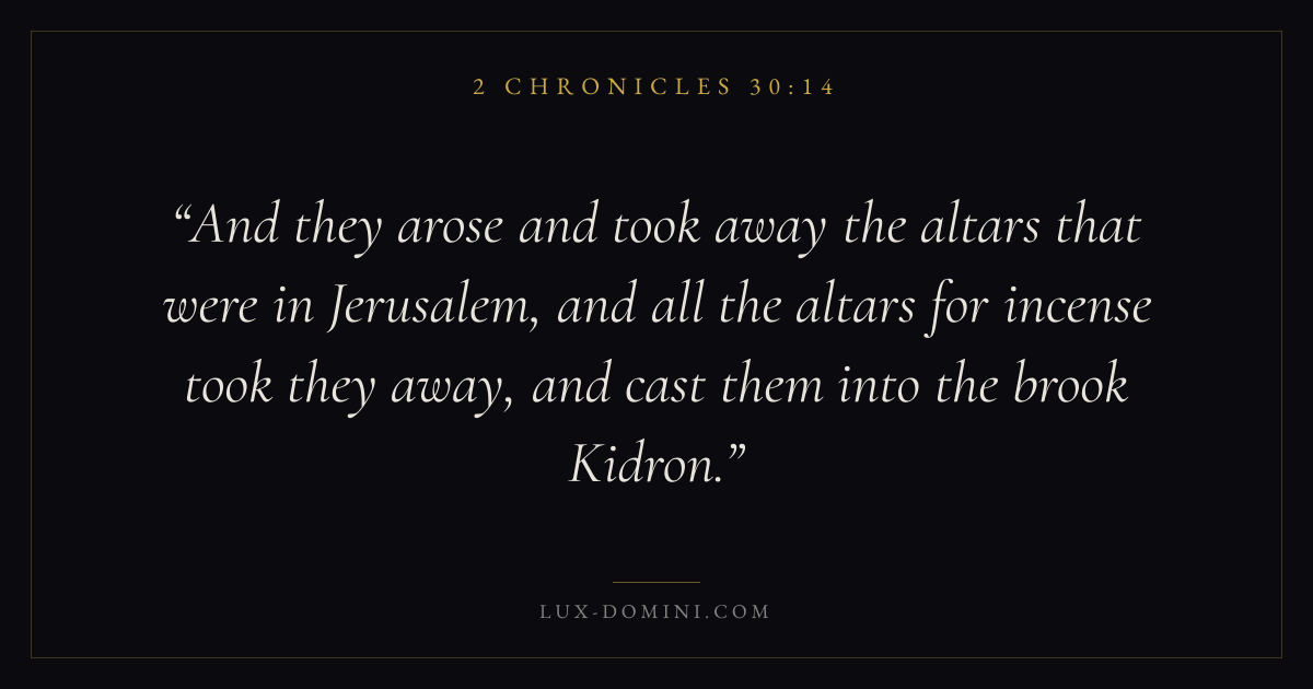 And they arose and took away the altars that were in Jerusalem, and all the altars for incense took they away, and cast them into the brook Kidron.