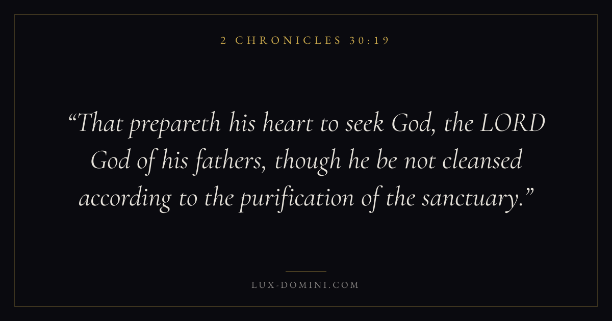That prepareth his heart to seek God, the LORD God of his fathers, though he be not cleansed according to the purification of the sanctuary.