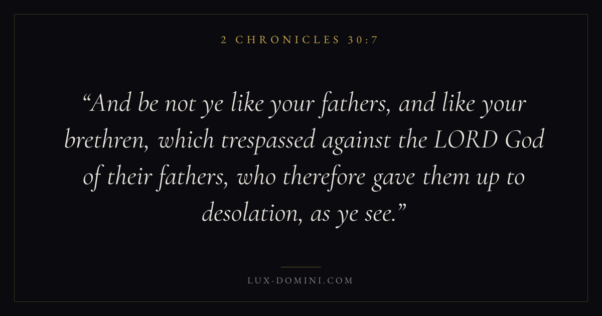 And be not ye like your fathers, and like your brethren, which trespassed against the LORD God of their fathers, who therefore gave them up to desolation, as ye see.