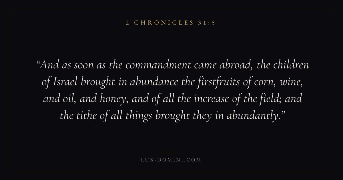 And as soon as the commandment came abroad, the children of Israel brought in abundance the firstfruits of corn, wine, and oil, and honey, and of all the increase of the field; and the tithe of all things brought they in abundantly.