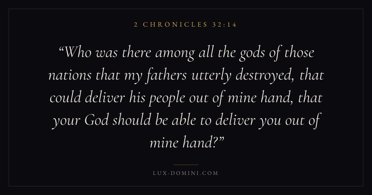 Who was there among all the gods of those nations that my fathers utterly destroyed, that could deliver his people out of mine hand, that your God should be able to deliver you out of mine hand?